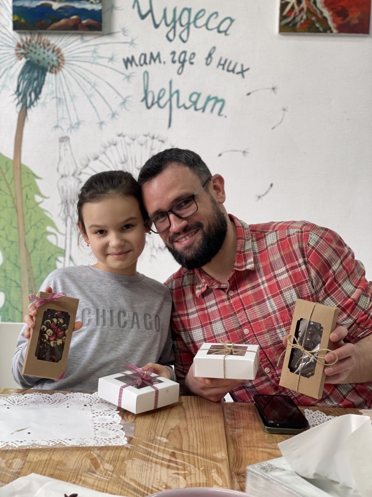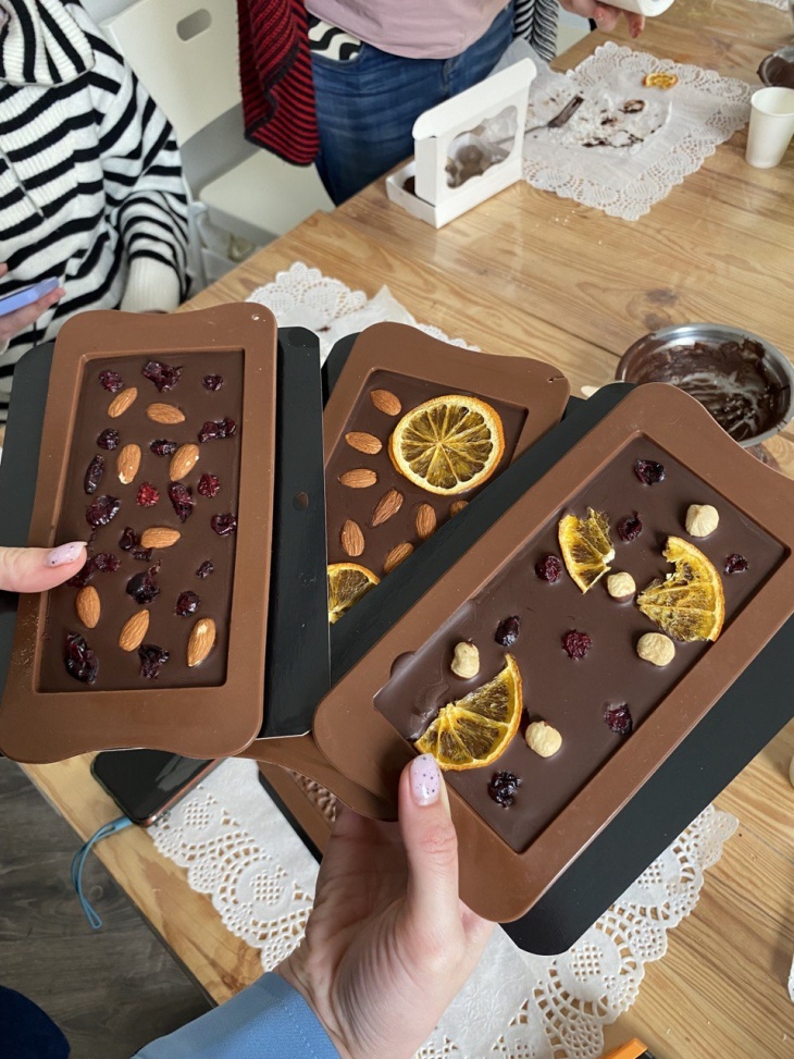 Кожен учасник забере з майстер-класу плитку авторського крафтового шоколаду і набір цукерок в красивій подарунковій упаковці. А також отримає рецепт для домашнього приготування і всі необхідні посилання на магазини з інгредієнтами і інвентарем.