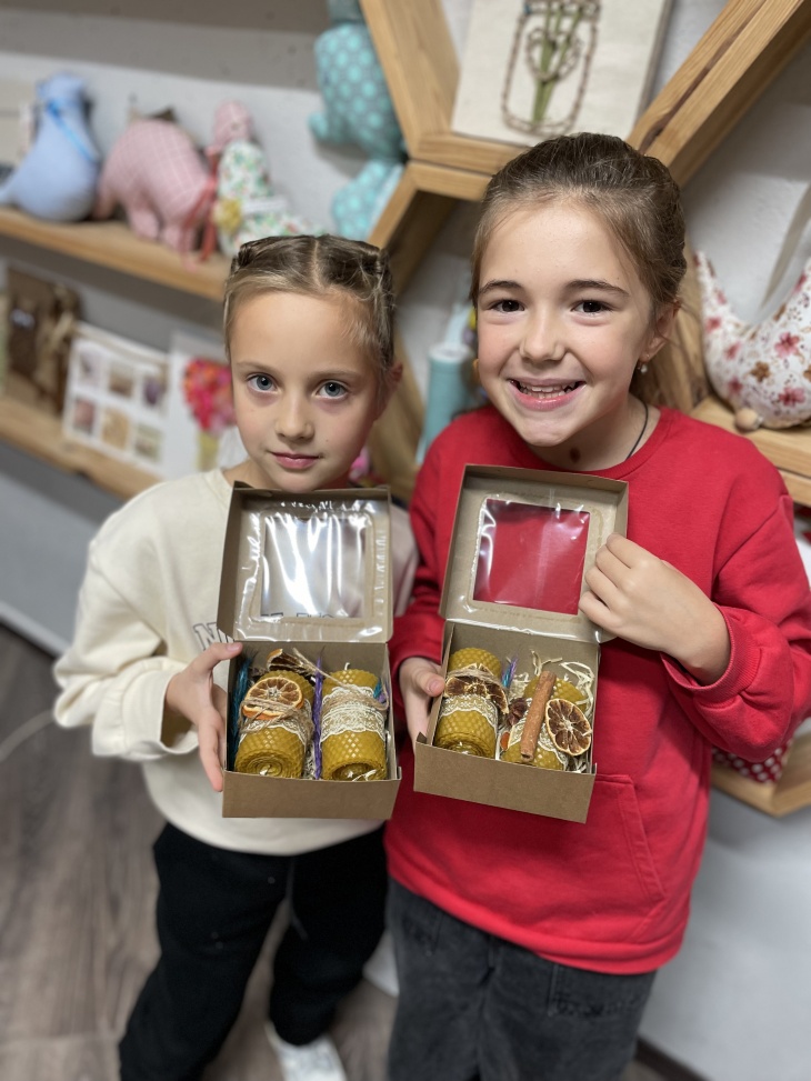 Кожен учасник забере додому 2 чарівні свічки, прикрашені на власний смак і упаковані в подарункову коробочку.