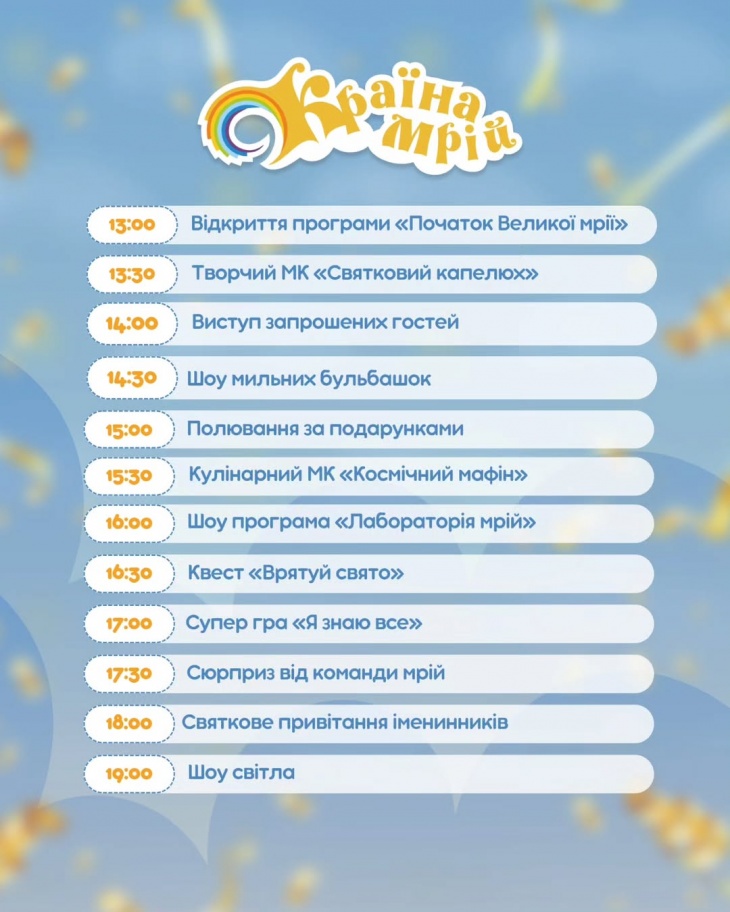 На вас чекають ігри, сюрпризи, анімаційні програми та безкоштовні майстер-класи.