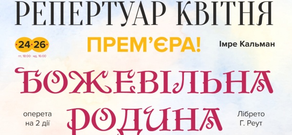 - оперети «Принцеса цирку» і «Божевільна родина» — довгоочікувана прем’єра про сцену і життя, славу і закулісся, ревнощі, очікування та мрії.