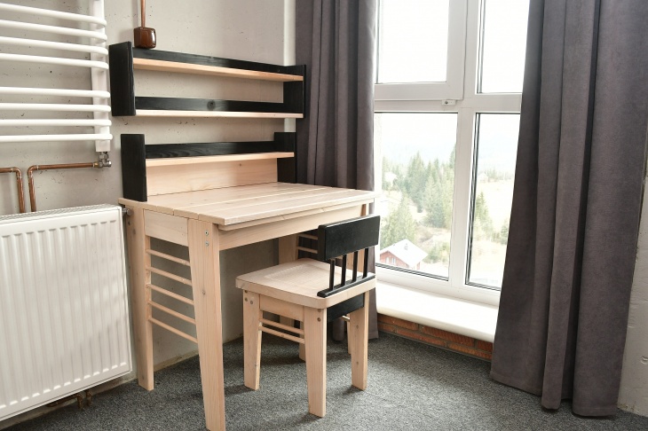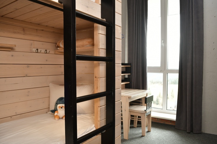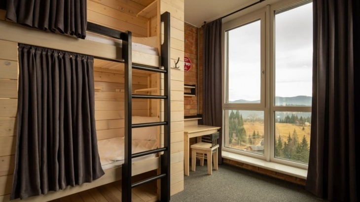 - Комфортабельні ліжка з ортопедичними матрацами, полички для зберігання речей, шафи