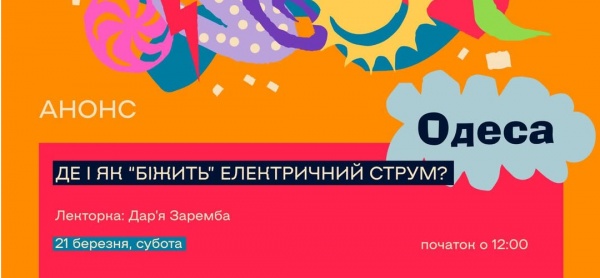Найближча подія: "Де і як “біжить” електричний струм?" від фізикиня Дарʼї Заремби