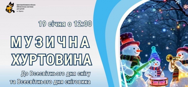 Запрошуємо на зимовий вогник «Музична хуртовина» присвячений Всесвітньому дню снігу та Всесвітньому дню сніговика.